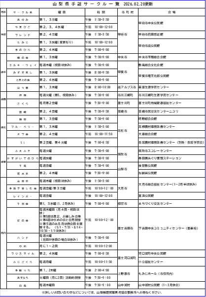 山梨県内手話サークル一覧表