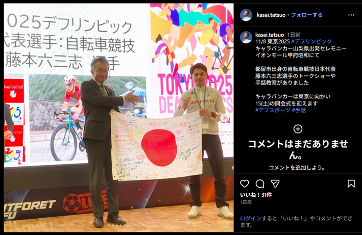 最終日の11月8日に無事に最後の東京都へバトンを引き渡すことができ、本当にホッとしています。これで「東京2025デフリンピックの山梨の応援イベント」は無事終了しました!