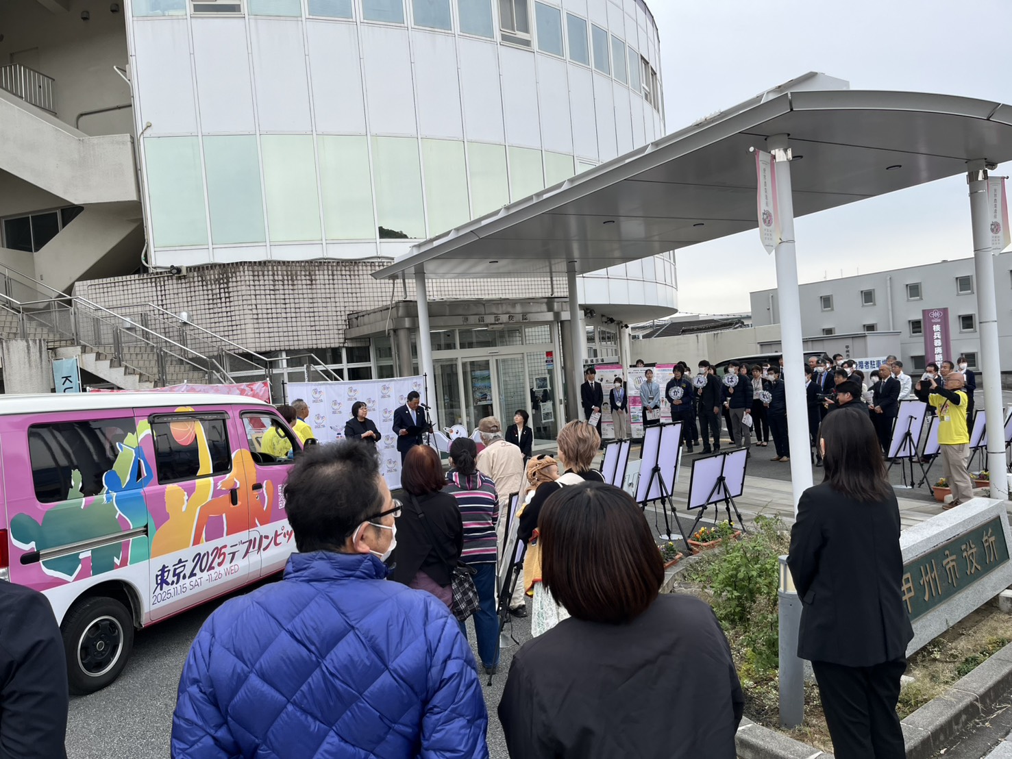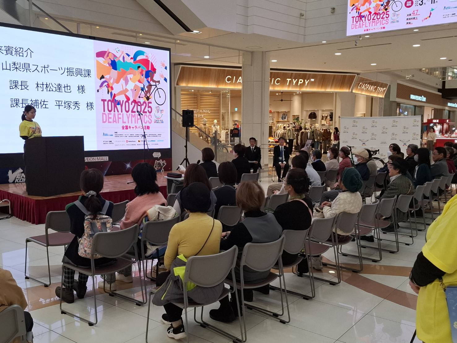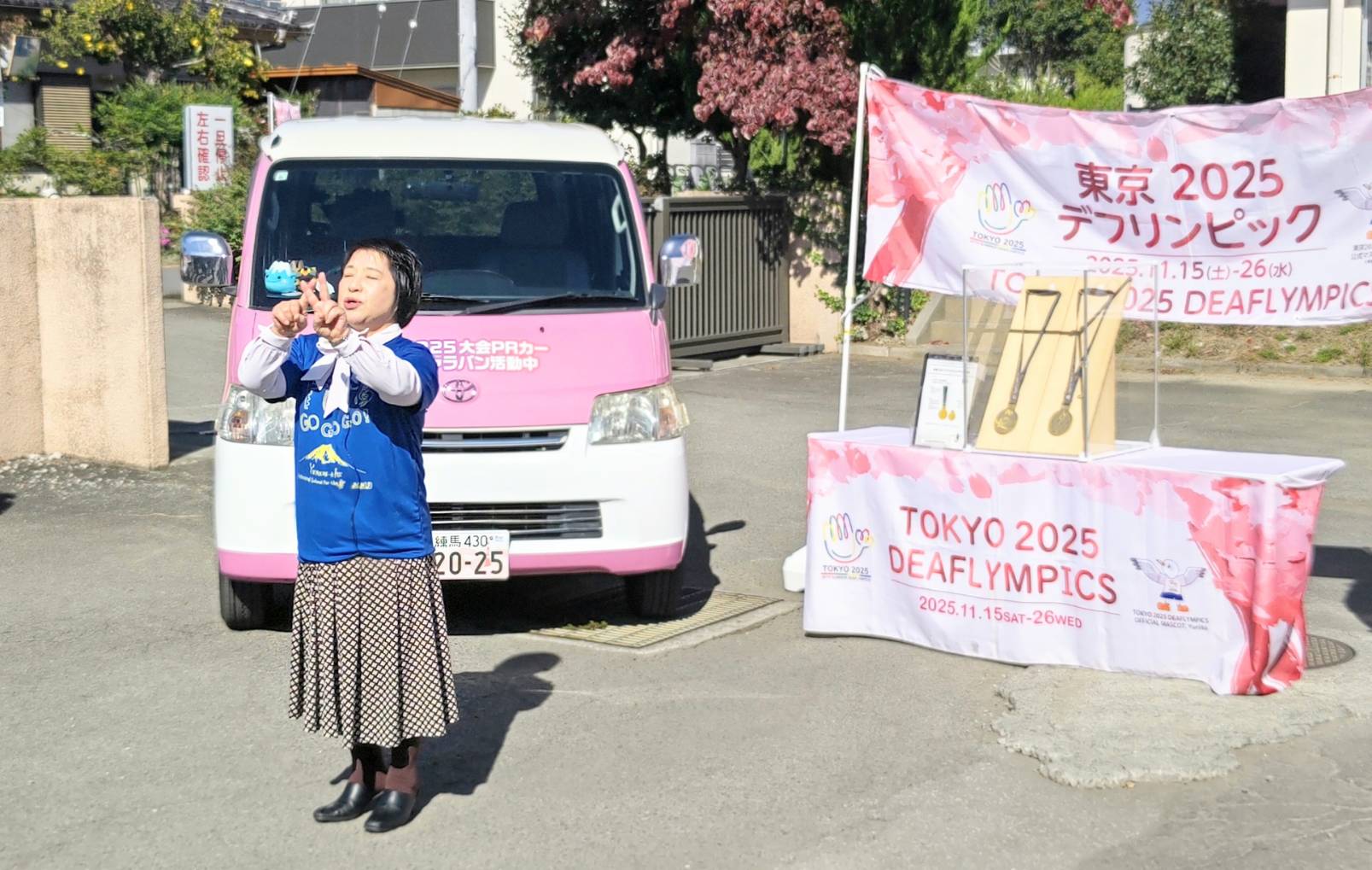 デフリンピックの開催まで残りわずかとなる中、この機運を高めるために、「東京2025デフリンピック」全国キャラバンカーによる機運醸成活動が上野原市から昭和町まで17か所の会場で行われました。