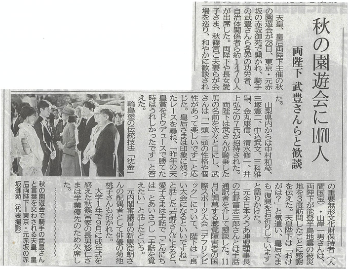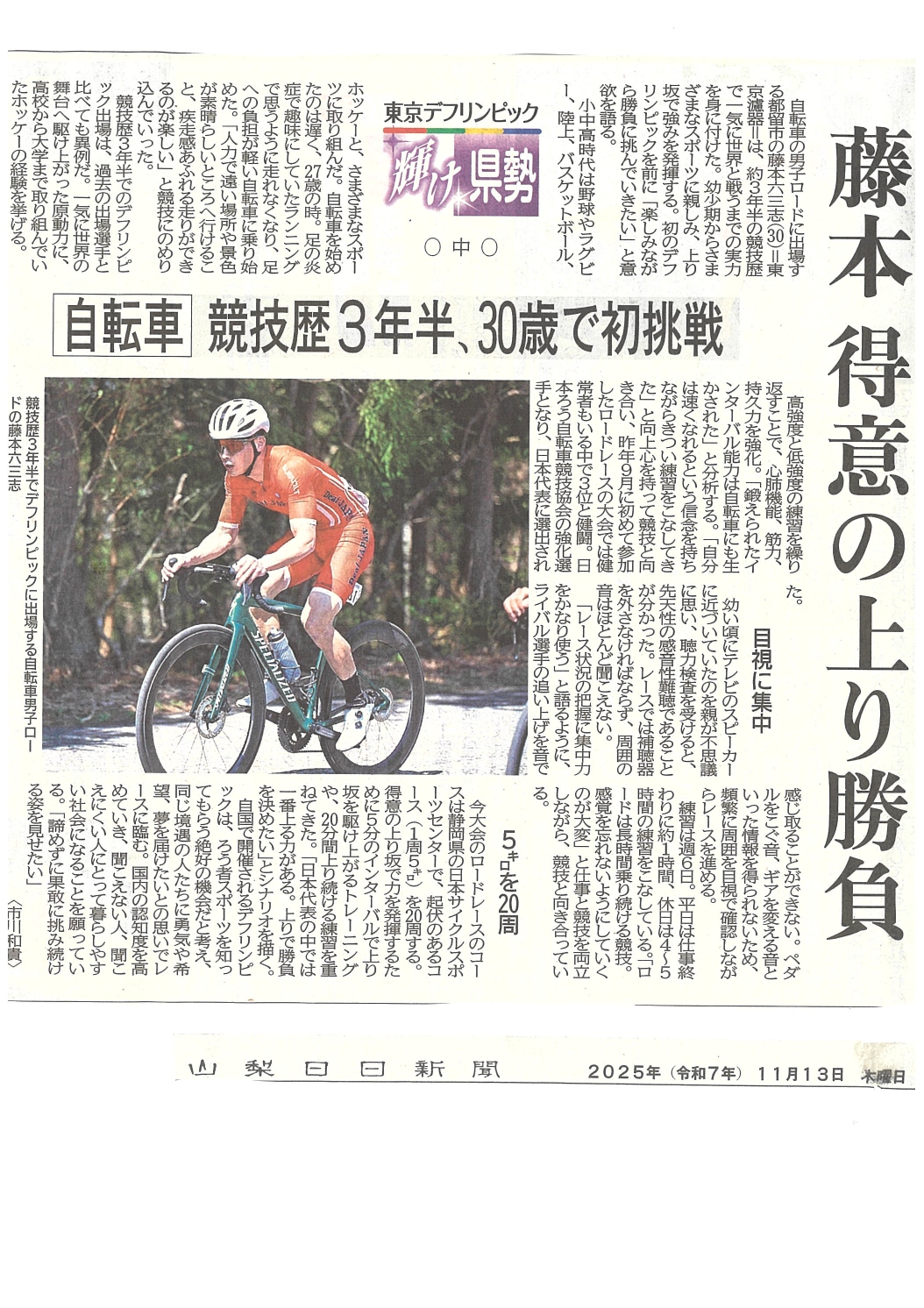 11月2日〜8日山梨キャラバン活動後、山梨日日新聞の記事掲載がありました。