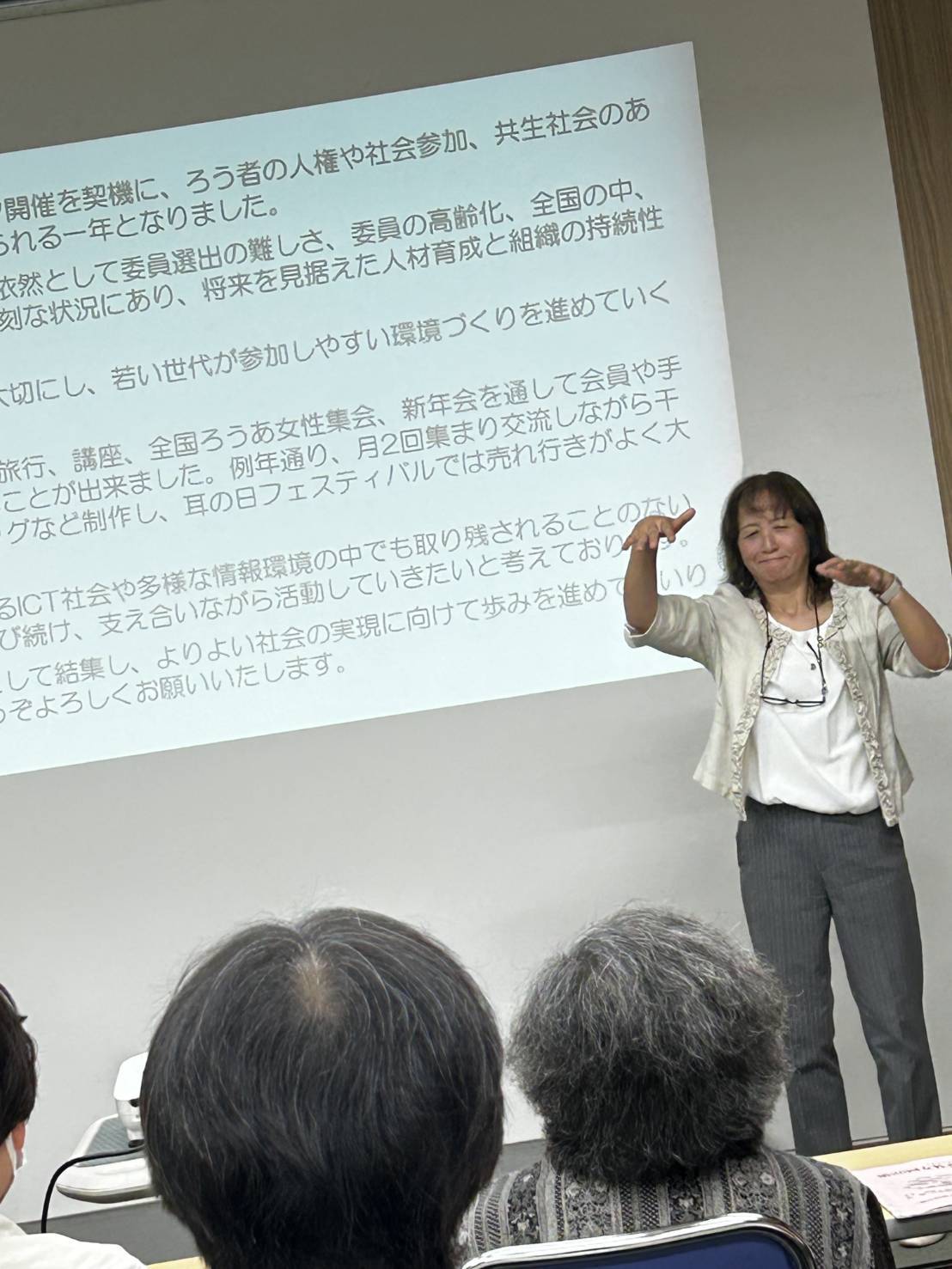 212.2026年4月5日(土)県立聴覚障害者センターにおいて2026年度令定時総会が開催されました。本総会では、令和6年度の事業・決算報告、令和7年度の事業計画・予算案の審議が行われ、無事に承認されました。また、仁科新理事長、による挨拶や会員から活発な意見交換もあり、今後の高齢部活動に向けた活気ある時間となりました。